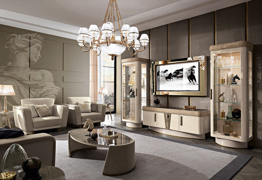 АЛМАЗНАЯ ЖИЗНЬ РОСКОШНАЯ ЖИЗНЬ Коллекцией Diamond компания Mobilpiù подтверждает свою способность полностью обставить жилые и обеденные зоны дома, элегантно и престижно. Концепция, философия дизайна в непрерывном развитии, которая представляет собой широкий горизонт конфигураций, которые вместе создают аутентичную, гостеприимную и очаровательную атмосферу.