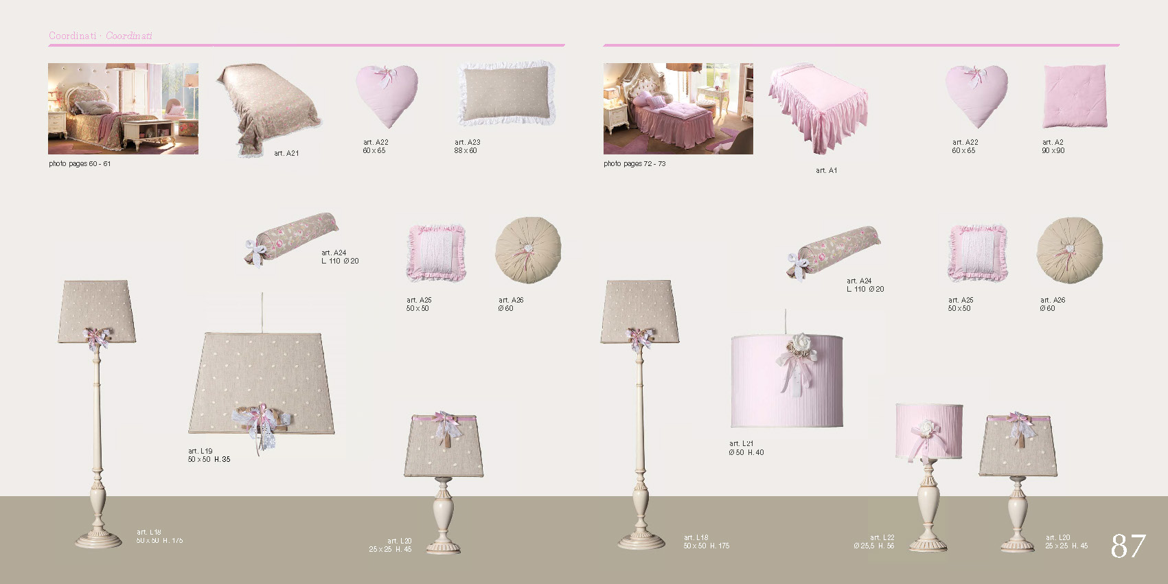 Нежные цвета, такие как лепестки персика, открывают дверь мечтам, создавая эмоциональный дизайн. Панели капитоне односпальных кроватей покрывают высококачественные обивочные ткани, а ночные ткани дополняют общий вид милыми женственными штрихами. Изящная цветочная резьба выделяется на изголовье и ножках комода и прикроватных тумб, а розовые букеты ручной работы определяют профили элементов.
