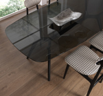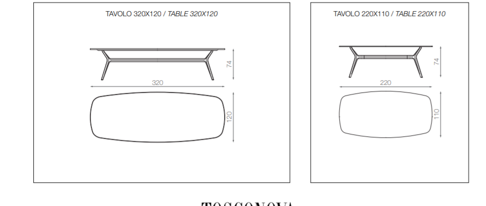 Tosconova. Zoe 220×110 The Zoe table is a fierce piece of Italian design. Inspired from the classic style from Tuscany, this item is the perfect blend of tradition and modernity. The table top can be customized both in glass or wood, both matching perfectly with the wooden legs to complete this unique sleek design.