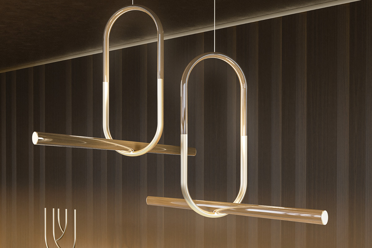 Фабрика Volpi Lampada L'equilibrista Ceiling lamp made from elliptical elements in Canaletto walnut or lacquered, assembled with added inserts in elliptical chrome-plated brass. LED lights. This article is not available in Myrtle essence.